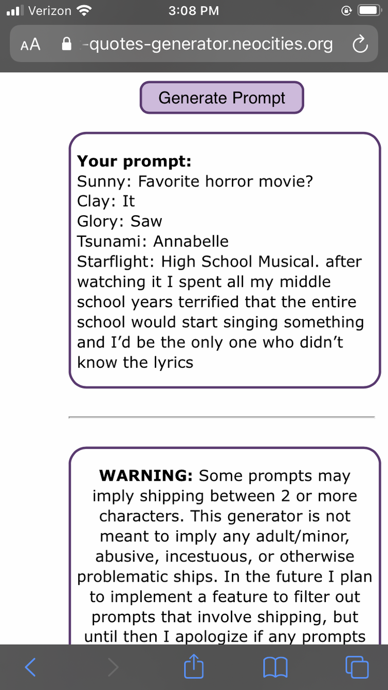 This generator is not meant to imply any adultminor abusive incestuous or otherwise problematic ships.